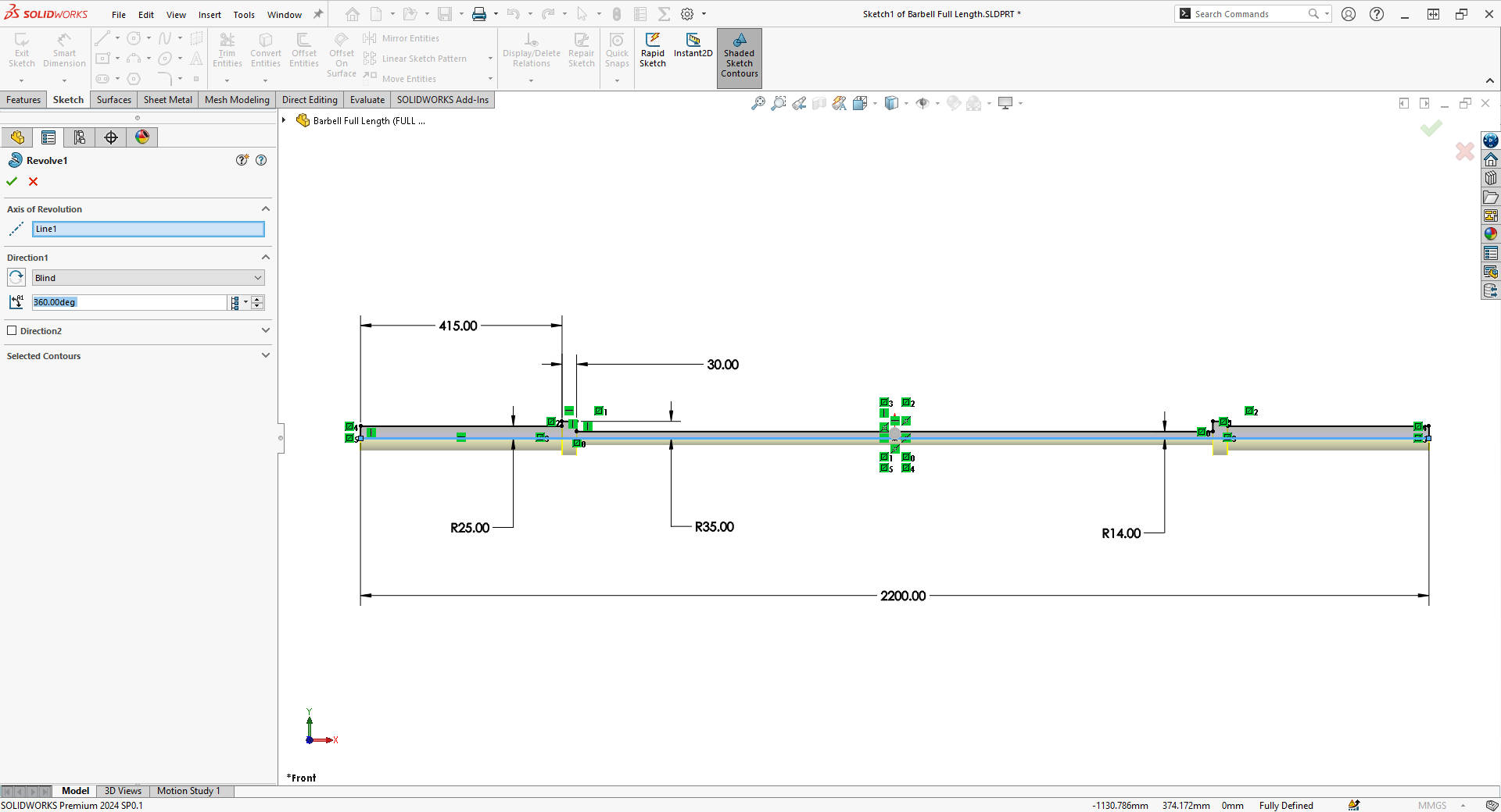 But if you want to add more detail and make it instantly recognisable, use multibody part modelling to add weights and collars to either end.