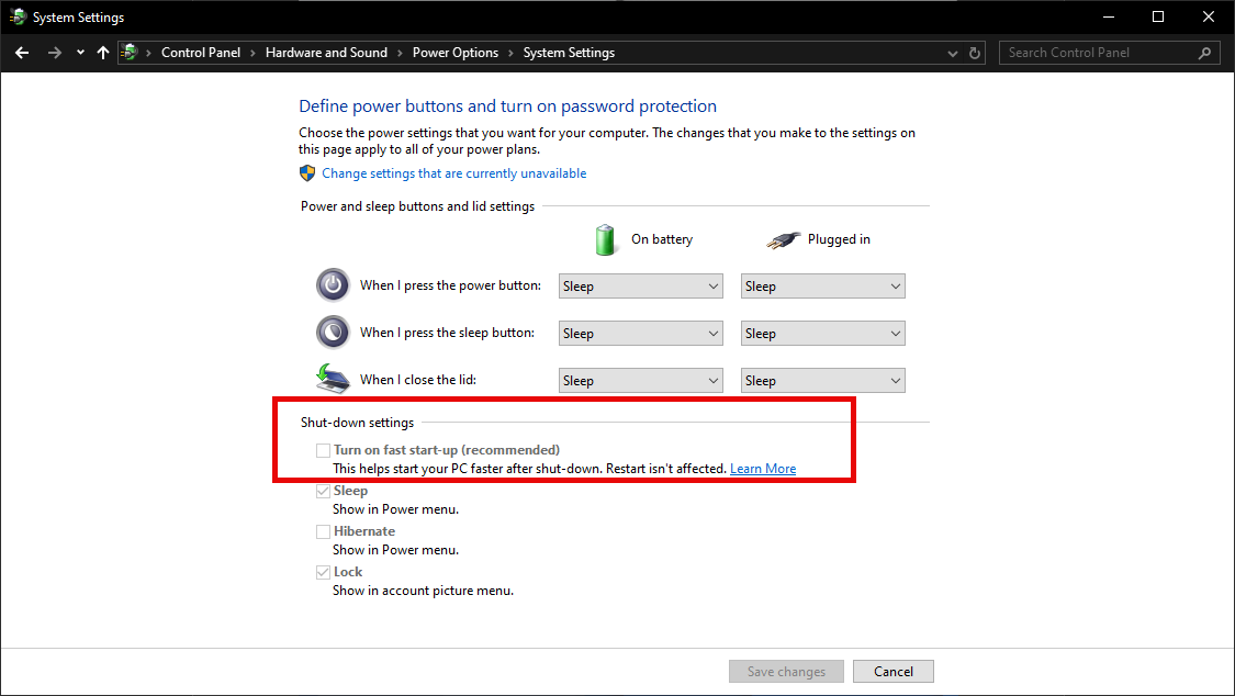 So instead of resetting completely, and having a restorative sleep, your PC is trying to run programs before it is even awake! So, we recommend turning off fast start - your machine may take slightly longer to boot up, but your patience will be rewarded with better performance.