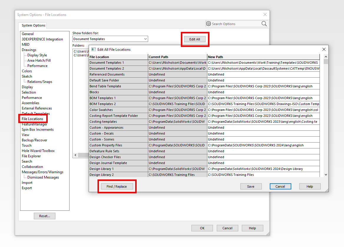 Where it may cause disruption is how it looks at your File Locations, a crucial and often modified section of your System Options. This is where you control the file-path of templates, sheet formats, weldment profiles, tables, and other external data you want SOLIDWORKS to notice.