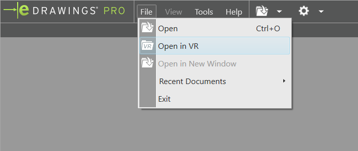 With eDrawings Professional we refer to the process as ‘direct VR’ as there is no special export or file type necessary; simply head to File > Open in VR.