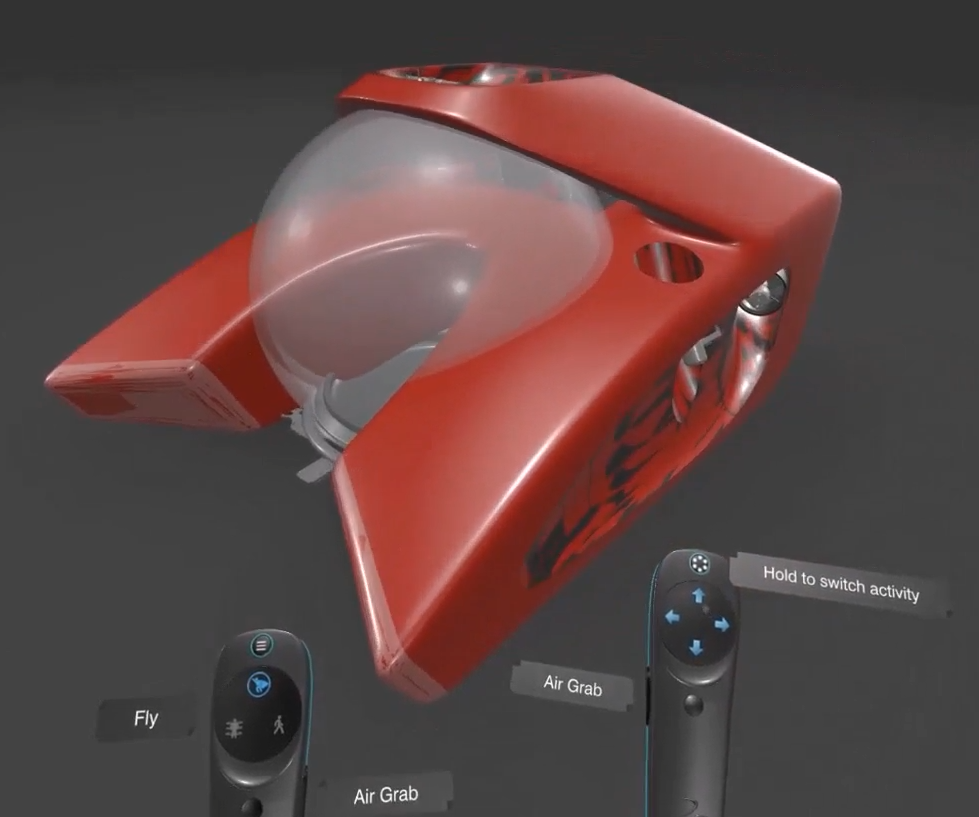 - Air Grab – Use the controllers to pull or grab at the air to move yourself around. Both controllers can be used together to pull/push the model, changing the scale. Think of it as ‘pinch to zoom’ on a touchscreen, but in 3D space.