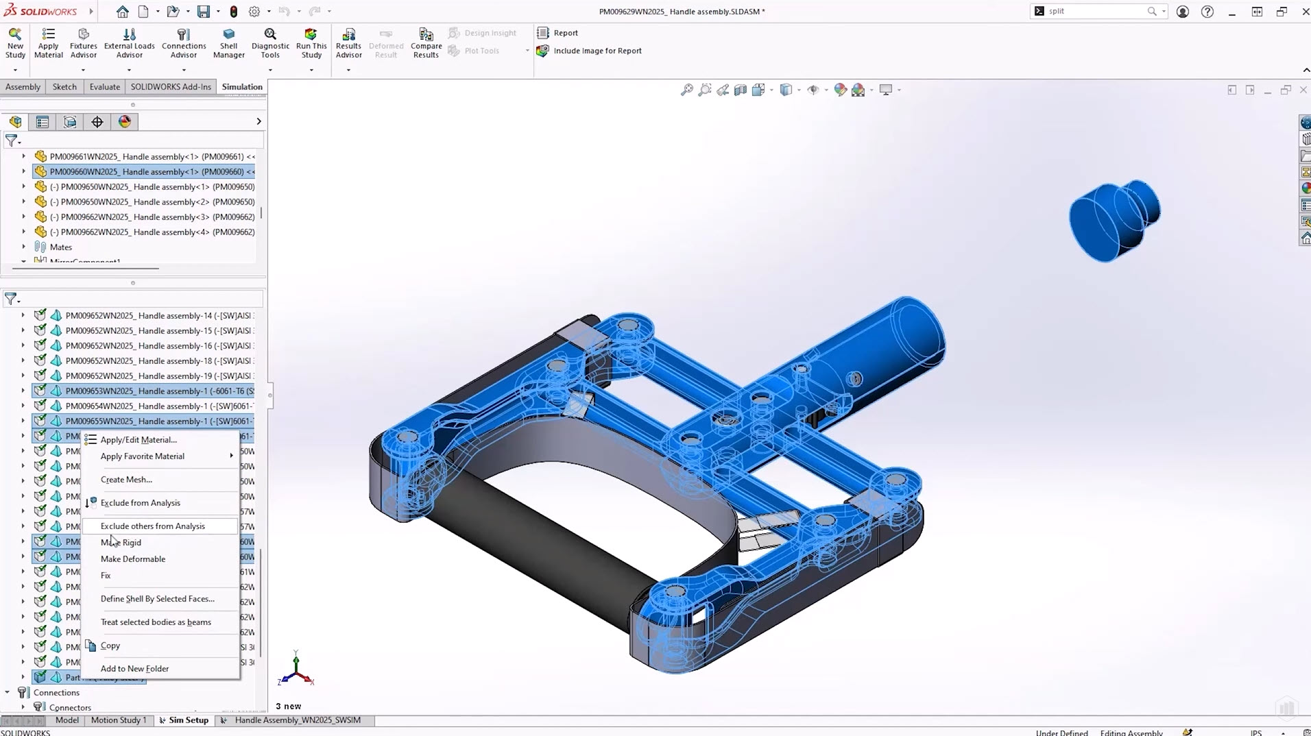 In cases where we need to analyse and assembly structure where many components are not integral to the structure, we can use “Exclude others from Analysis” to quick isolate a small subset of parts to analyse.