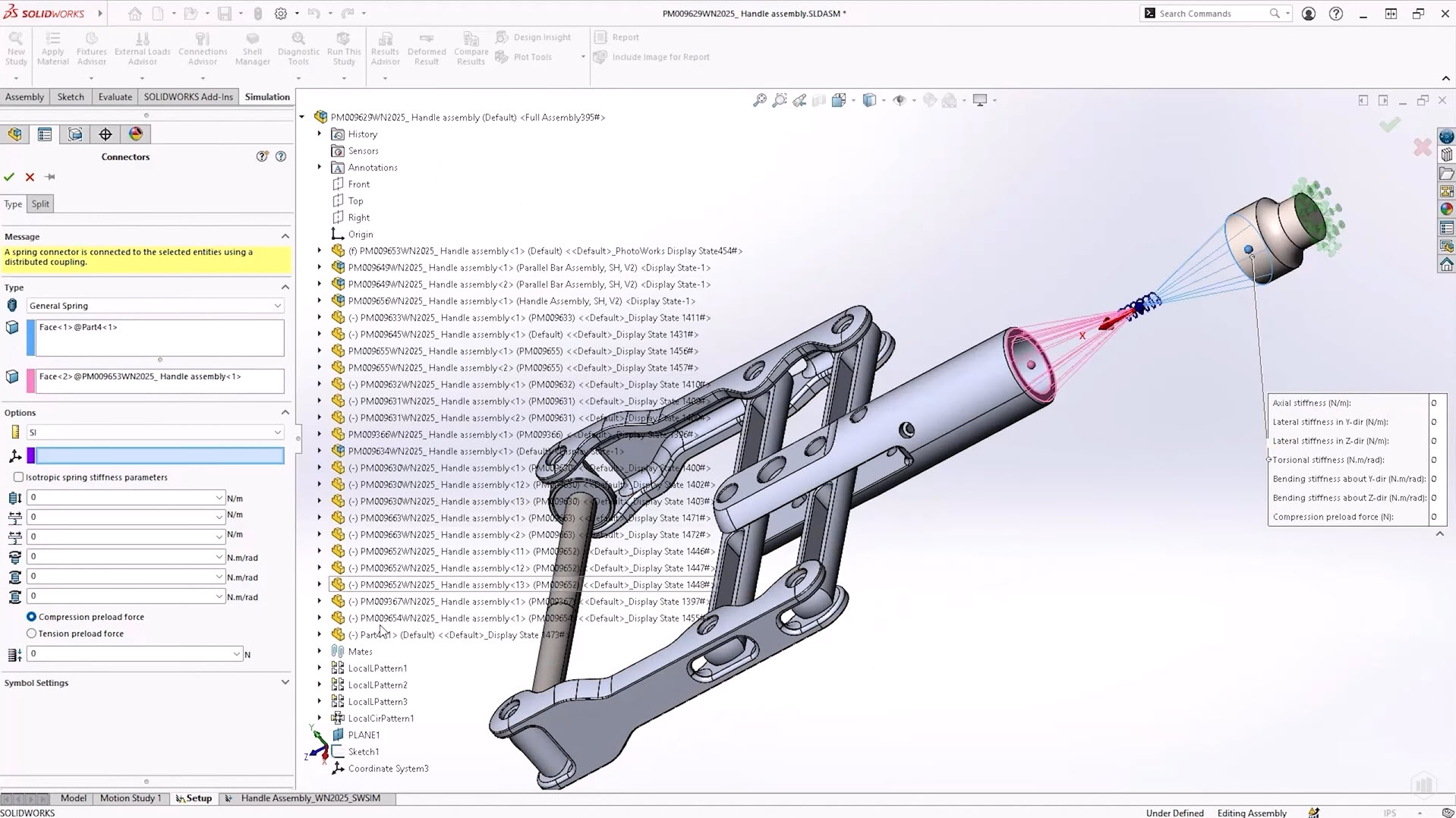 Learn More Bending and lateral stiffness can be defined as anisotropic, as well as the standard axial and torsional values. The usual tensile and compressive preload force options are still available as well. This in turn allows for more accurate representations of spring components in your simulations.