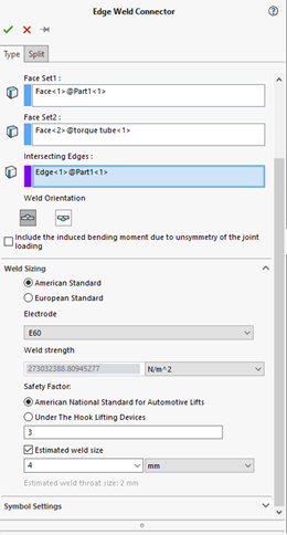 The property manager and results for edge weld connectors have also seen an overhaul, with improvements including visibility of the estimated weld throat size when defining the connector, and also when reviewing the weld check plot.