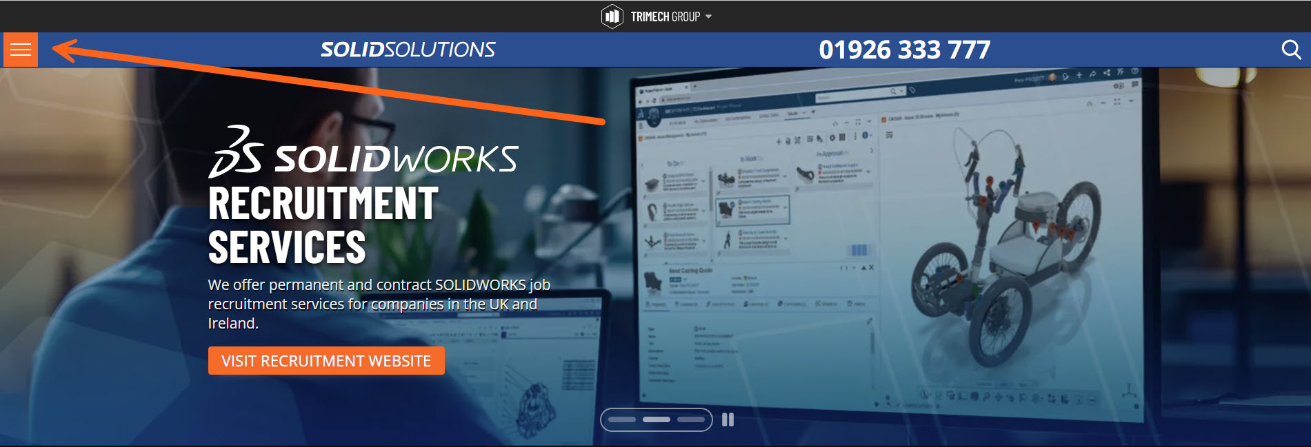 To access information about your SOLIDWORKS subscription status, book onto training courses, or view your certificates for completed training courses, head to MySolidSolutions, or select the hamburger icon in the top left corner and choose 'MySolidSolutions' from the menu.