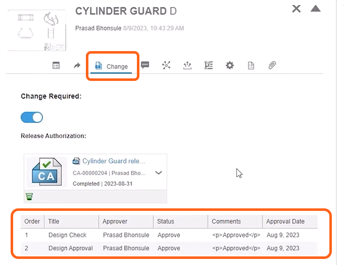 Change actions can be used in conjunction with approval route templates so standard, defined processes for design release are being followed.