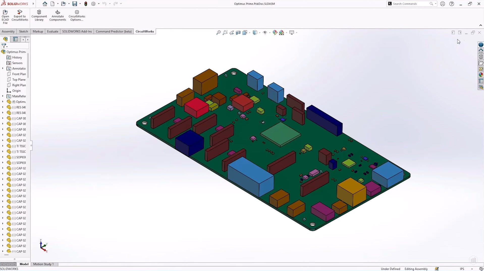 SOLIDWORKS 2025 promotes collaboration between electrical and mechanical engineers by making it easier to work with detailed circuit board data. With the new capabilities in CircuitWorks, you can leverage downstream engineering tools for tasks like thermal analysis and shock validation.