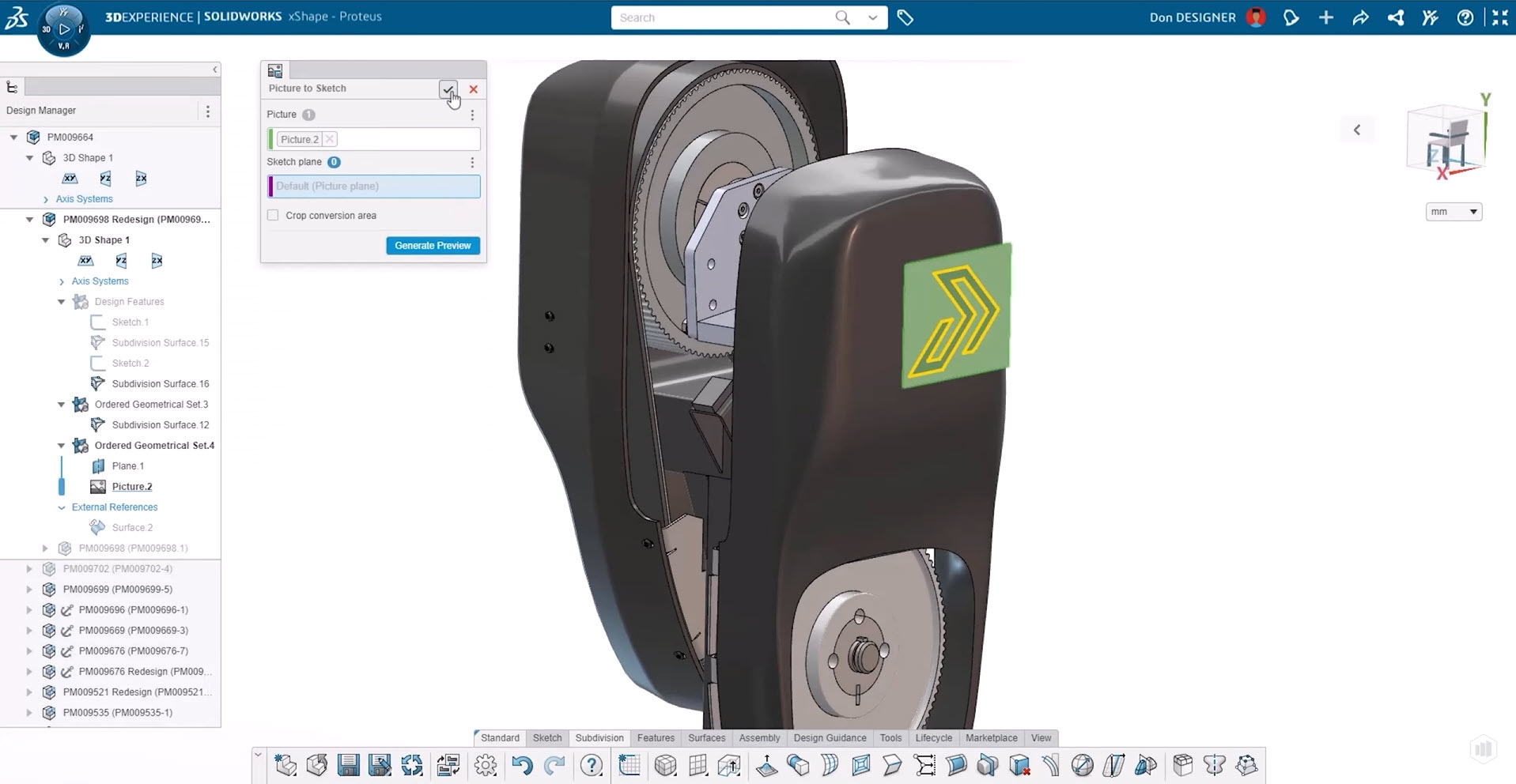 The Picture-to-Sketch feature accelerates the design process by automatically generating editable 2D sketches from images.