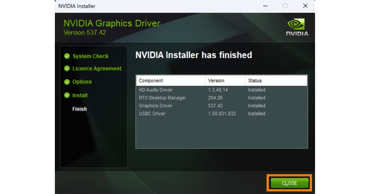 Allow the installer to remove the old driver and install the new one. Once complete, you can close the installer window.