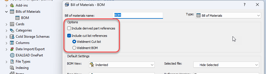 Enabling Display of Derived Parts, Weldment Cutlists & BOMs within a Bill Of Materials